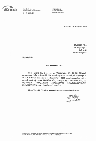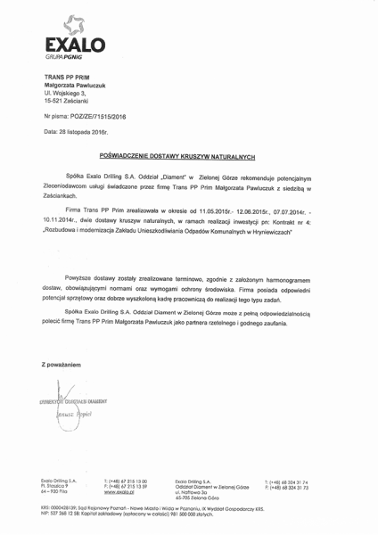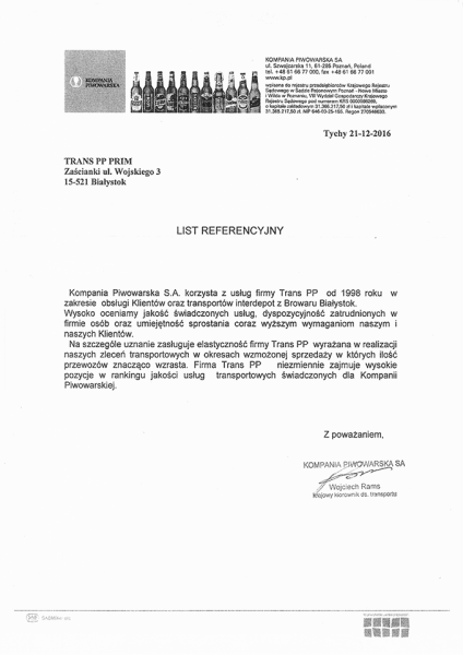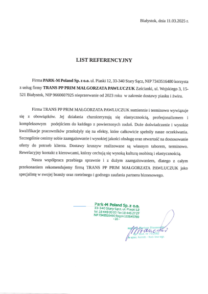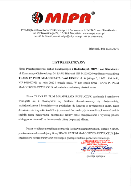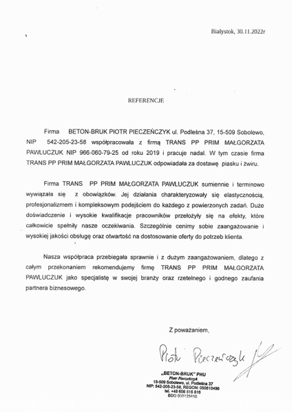 Posiadamy szereg referencji podmiotów z którymi współpracujemy.